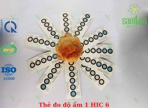 Câu trả lời chính là Thẻ chỉ thị độ ẩm (HIC). Đây là một loại thẻ giấy đặc biệt được tẩm hóa chất nhạy cảm với hơi ẩm (thường là muối Coban hoặc các hợp chất hữu cơ an toàn). Thẻ sẽ thay đổi màu sắc dựa trên mức độ ẩm tương đối ($RH$) trong môi trường kín, đóng vai trò như một thiết bị đo lường không dùng pin, cực kỳ kinh tế và chính xác.